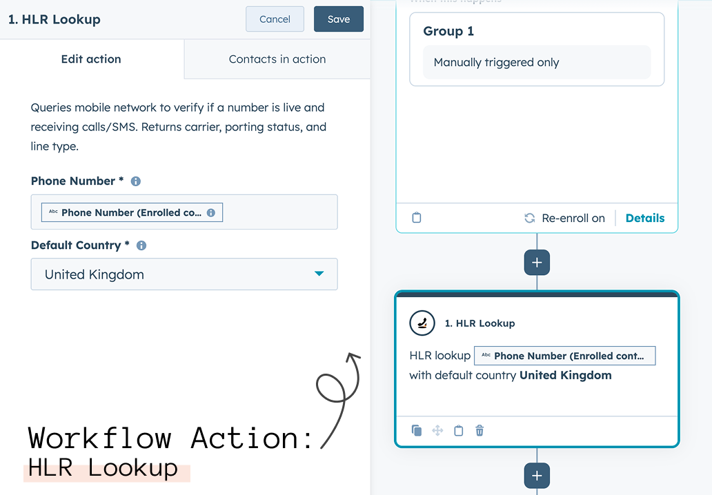 More importantly, HubSpot does not natively check whether a phone number is actually active on a carrier network. Sales and marketing teams were previously forced to guess, use external APIs, or write custom code to clean their CRM. Clean Dial fixes this with a cost-effective approach using two workflow actions: HLR Lookup and Format Phone Number.