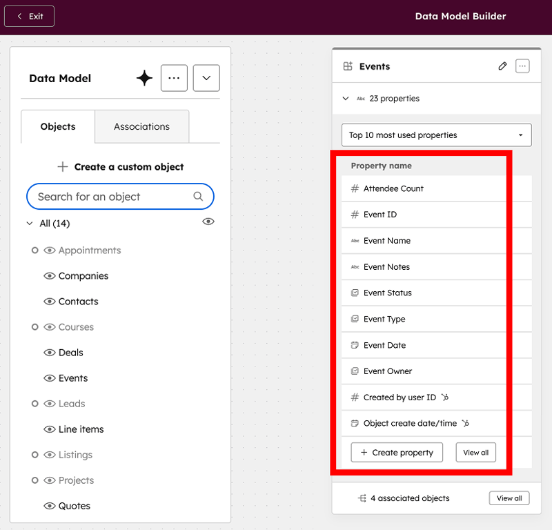 - Check Your Object Schema Go to Settings → Data Management → Data Model Here, make sure your custom object is configured to associate with the right standard objects (like Contacts or Companies). If it’s not linked, reports and workflows can’t access those relationships.