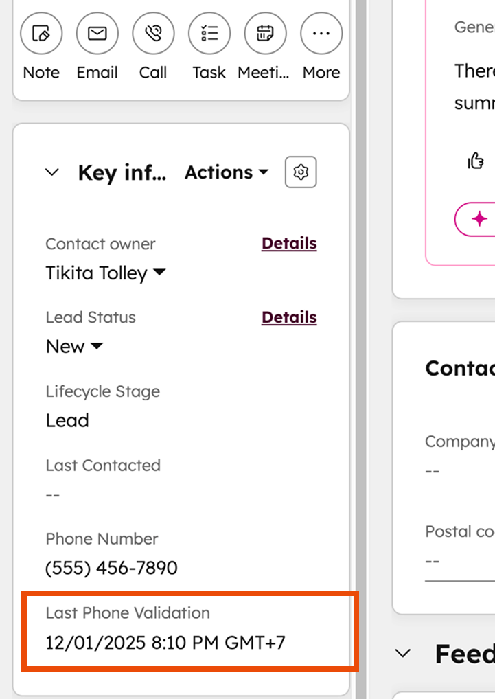 Track when each contact's phone number was last validated with automatic timestamp logging